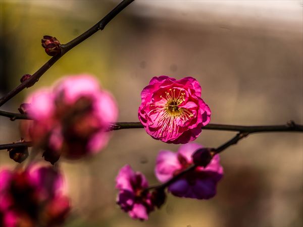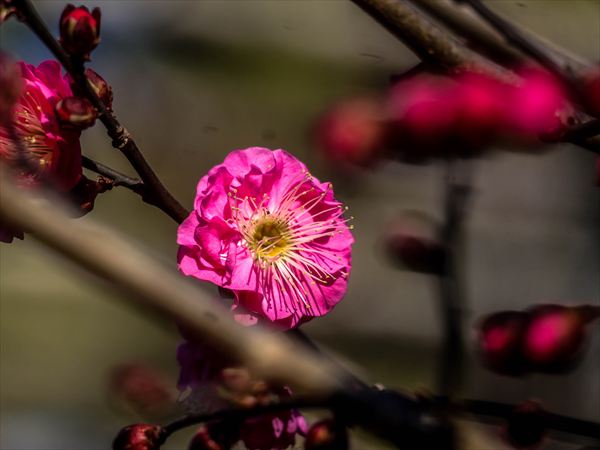 東京・上野東照宮・梅、、冬ボタンの花々